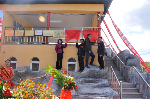 接着,徐光君与张佩远分别代表园艺园林学院和延寿县长寿山园艺专业合作社进行签约;郑秋鹛、高雪峰、徐光君和张佩远分别代表学校和合作社为“东北农业大学特色产业基地”“东北农业大学园艺园林学院实验实习基地”揭牌。