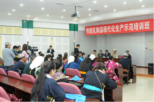 首先,张显伟表达了对远方牧民的热烈欢迎,并简要介绍了学校及食品学院的情况。他表示,为加快边疆建设,促进民族传统产业升级换代、提高人民收入、实现共同富裕的目标,特开设“传统乳制品现代化生产技术与示范”项目培训班。他希望在牧民培训中能够基本掌握一些传统乳制品的现代化生产技术,带动内蒙古和西藏地区的传统乳制品生产企业实现技术升级和产品升级,加快传统食品行业产业化升级换代,为行业振兴和区域经济发展做出新的、更大的贡献。