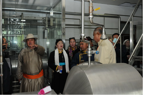 在为期三天的实践学习交流中,牧民们先后参观了万家宝牛奶工厂,学习了奶豆腐、奶清乳糖、奶皮子以及奶油的制作流程,与食品学院的老师们沟通交流,掌握了传统乳制品加工的基本知识。