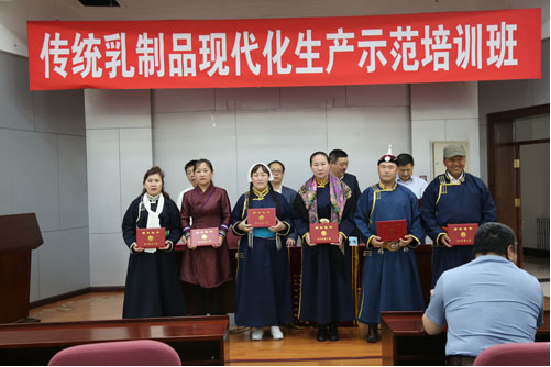 5月22日,传统乳制品现代化生产示范培训班的开班仪式上午9点在买球赛的app官网图书馆229举行。食品学院党委书记张显伟、高级工程师程涛、研究员潘文彪、新巴尔虎左旗就业服务局局长苏德、昂格乐玛奶食品厂会长特木尔巴根等来自内蒙古和西藏的牧民参加了开班仪式。仪式由食品学院副院长刁铁军主持。