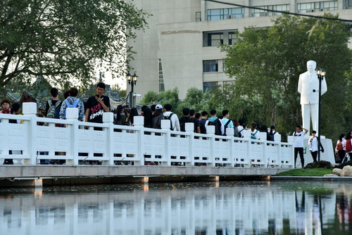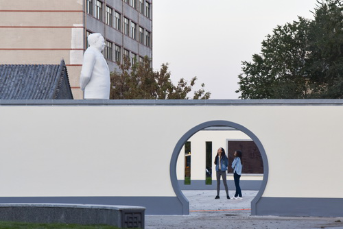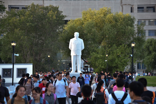 逡巡北折,石径蜿蜒,后稷广场也。千凿出深山,万琢雕天颜,终成后稷之石身。始祖五谷,掌节气之变,教民稼穑,济弱扶危,泽被苍生,遗惠神州,享万民之仰慕。南行百步,当代后稷广场也。白石之像立于前,脚踏龙江黑土,眸含万里星空,刘达之塑像也。忆昔当年,东农草创,建楼聚才,成农校之典范。奋斗不止,玉汝于成,创两校掌三校,为教为学之楷模;刚正不阿,实事求是,兴一市治一局,为官为人之榜样。环视左右,廊腰缦回,求是墙上,镌刻众先生之笑貌;名师像旁,响彻诸学子之赞声!思及前辈之鸿绩,放眼今朝之气象,发于心,动于情,安不敬乎?