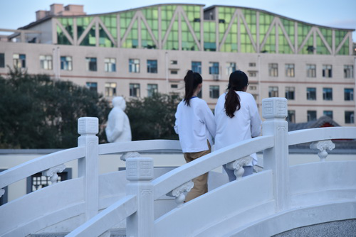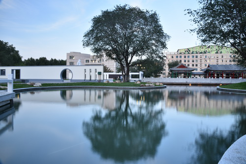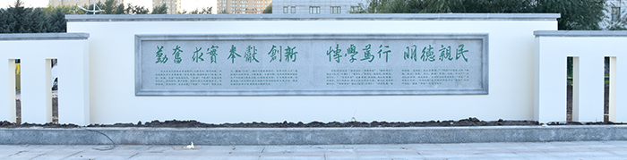 时维九月,佳园初成。秋雨洗铅华,书声染墨香。南北俯瞰,稼穑大道,长桥卧波,雕栏玉砌,碧水蓝天相映;东西游目,四亭二榭,异彩纷呈,杨柳依依,校标石雕成行。阡陌交通,芳草萋萋,轻歌曼舞,鸟语花香,中山水外田园,皆在其中,极视听之娱也。安步当车,一朝莅临,后稷传承广场也。校标迎宾,素手托举希望,寓意深远。文化景墙,东农精神,薪火相传,百折不挠,引领学校建设发展;回眸凝神,校风校训,立德树人,教诲学子鸿鹄高翔。