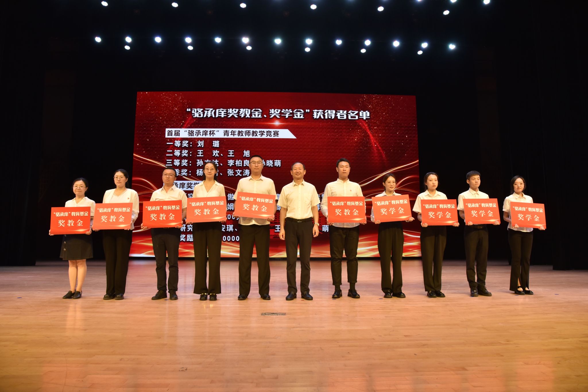 潘俊波宣读《关于颁发骆承庠奖学金、奖教金的决定》