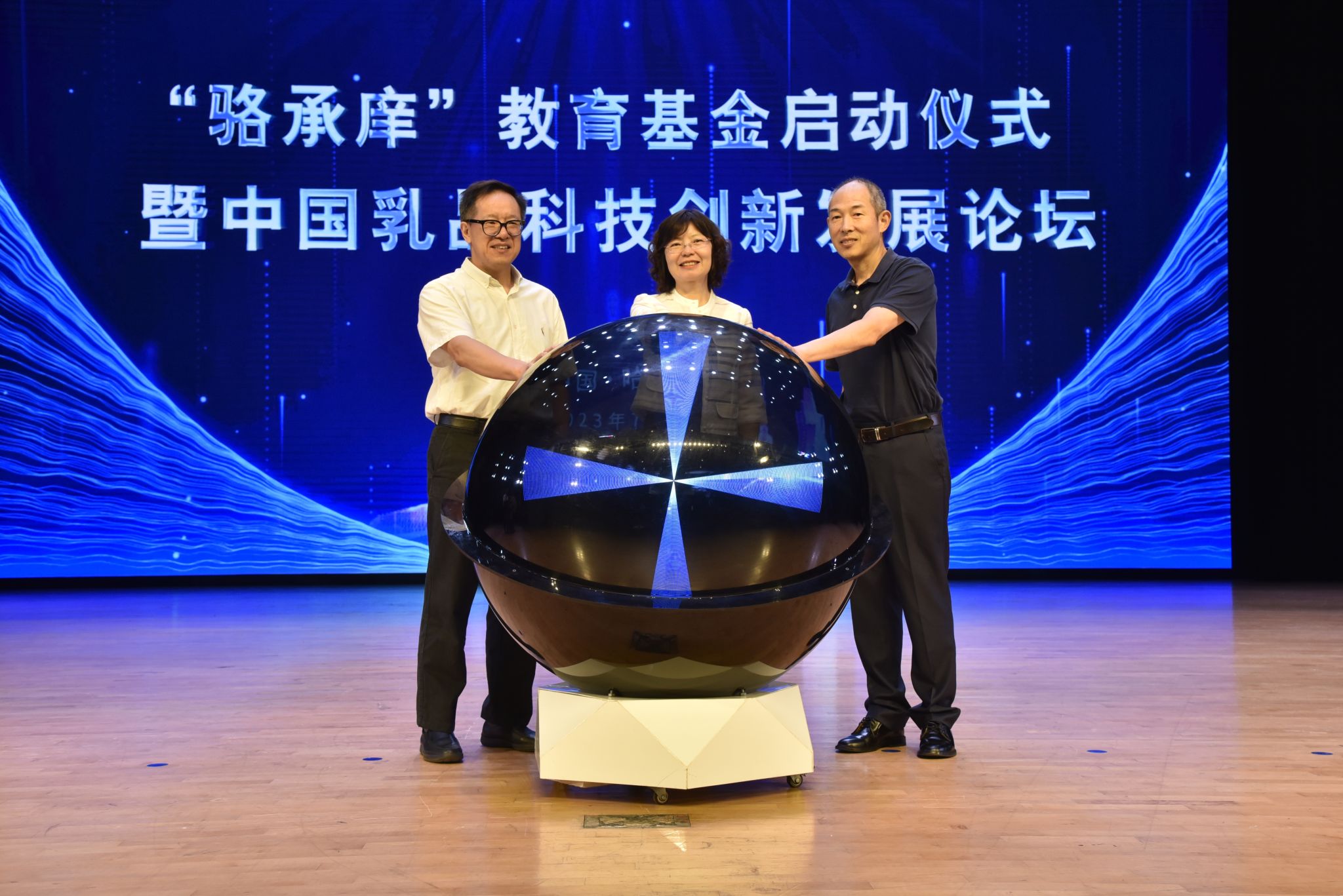 陈历俊、朱宏和车可舒同时按动“骆承庠教育基金”启动球,与会人员共同见证了“骆承庠教育基金”正式成立。食品学院党委书记潘俊波宣读《关于颁发骆承庠奖学金、奖教金的决定》。