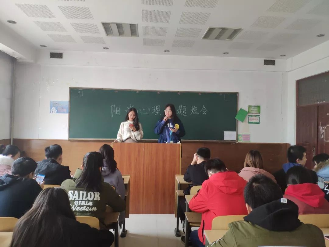 为帮助同学们培养健康的心理,积极面对人生的挑战,更好的更快的适应大学生活,为自己的大学树立正确的方向,我院积极响应心理健康中心的号召,特组织开展阳光心理进班级主题班会活动”。