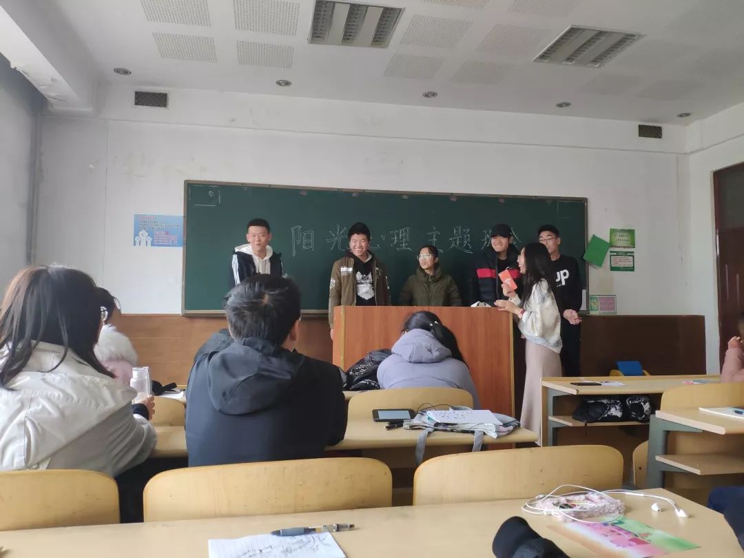 大学生是宝贵的资源,是一个国家未来的栋梁,作为社会活动的主要推动力量,大学生不仅要做到“德智体美”全面发展,还应锻造健康的心理,让学生们充分认识到心理咨询的重要性,提升通过自我调节或其他有效途径解决心理问题的意识。因此,阳光心理进班级活动显得尤为重要,我们将更加关注心理健康问题,丰富活动内容,争做德智体美全的新青年!