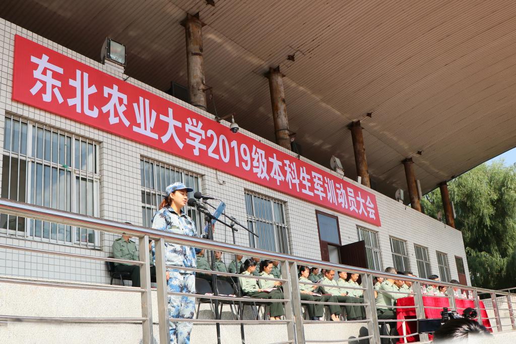 8月25日上午8:30,东北农业大学2019级新生军训动员大会在南区体育场举行。大会由校学生工作处副处长刘刹主持,新生军训师政委、校党委副书记马宏坤,学生工作部、武装部、教务处、校团委等相关部门领导,各学院党委副书记,全体2019级新生辅导员出席大会。