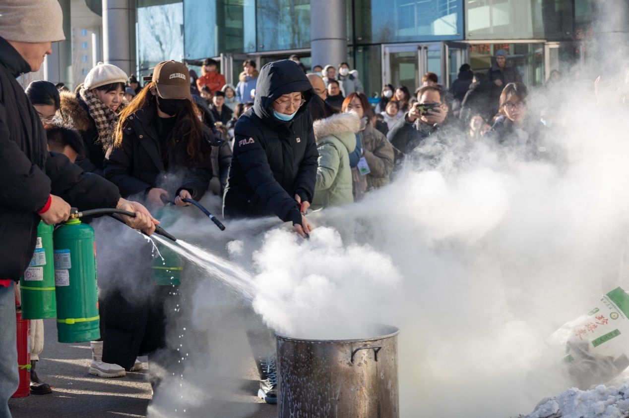 学院师生学习灭火器使用