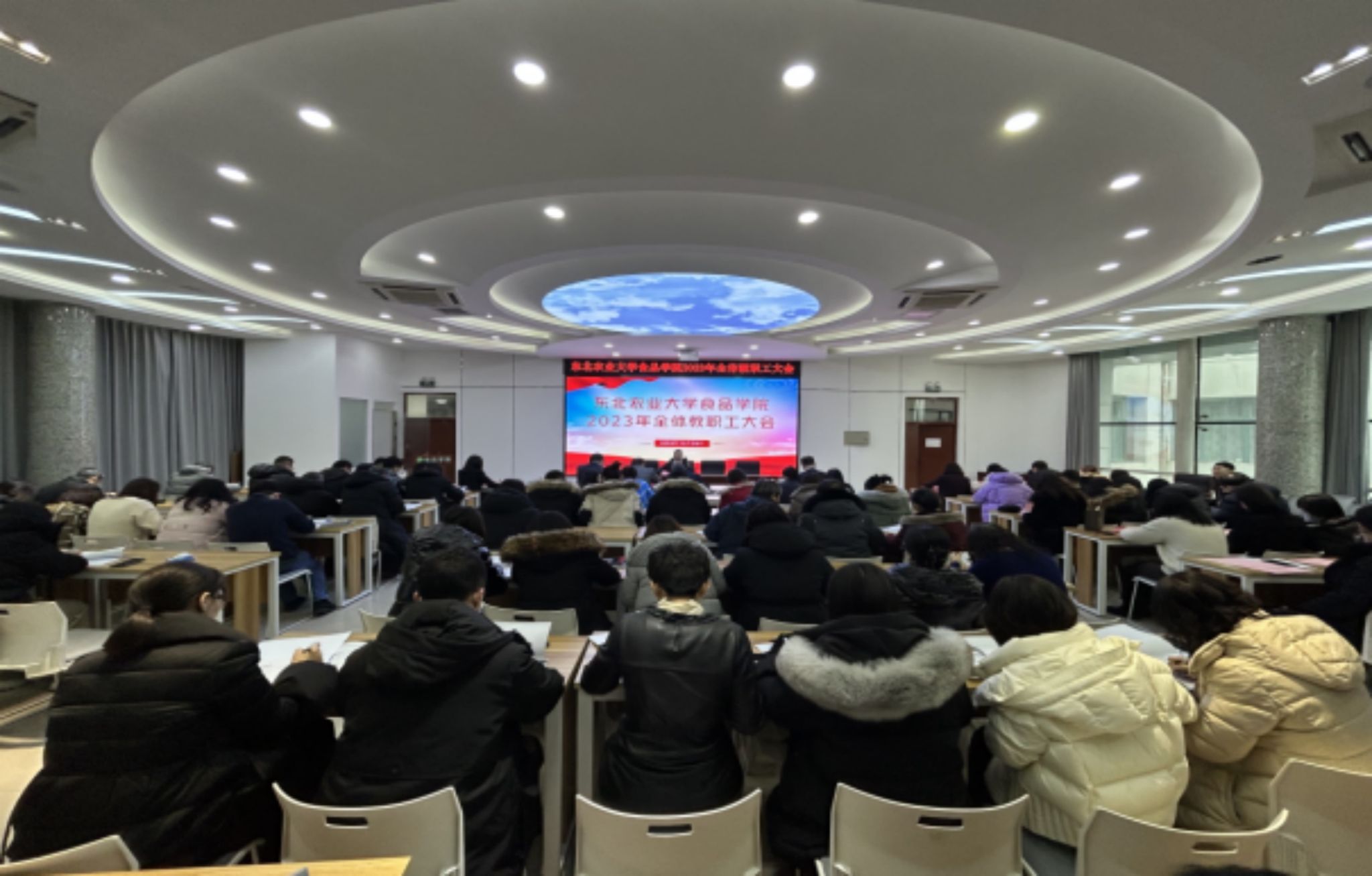 12月29日上午,我院2023年全体教职工代表大会在食品实验楼315会议室召开。校工会副主席杨石穿应邀出席会议,学院全体教师参加会议。会议由学院党委副书记、工会主席钱芳主持。