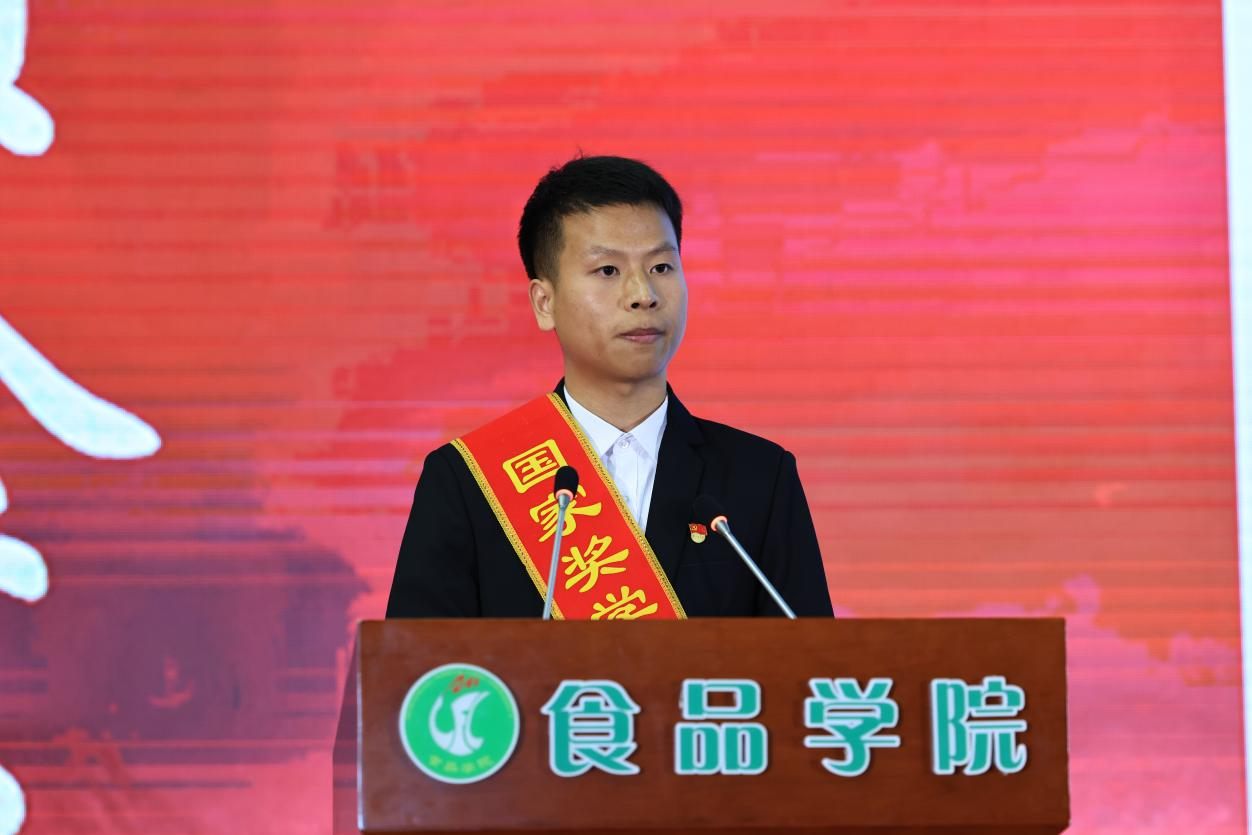 2021级粮食油脂及植物蛋白工程专业博士研究生闫世长代表研究生国家奖学金获得者发言,“感谢龙江大地肥沃黑土给予营养,感谢东农培养给予力量,龙江振兴、东农发展需要学子反哺,希望学弟学妹们坚定理想信念,将”小我”融入”大我”,以扎扎实实的行动奔赴光荣与梦想的远征,在青春的赛道上奋力奔跑”。