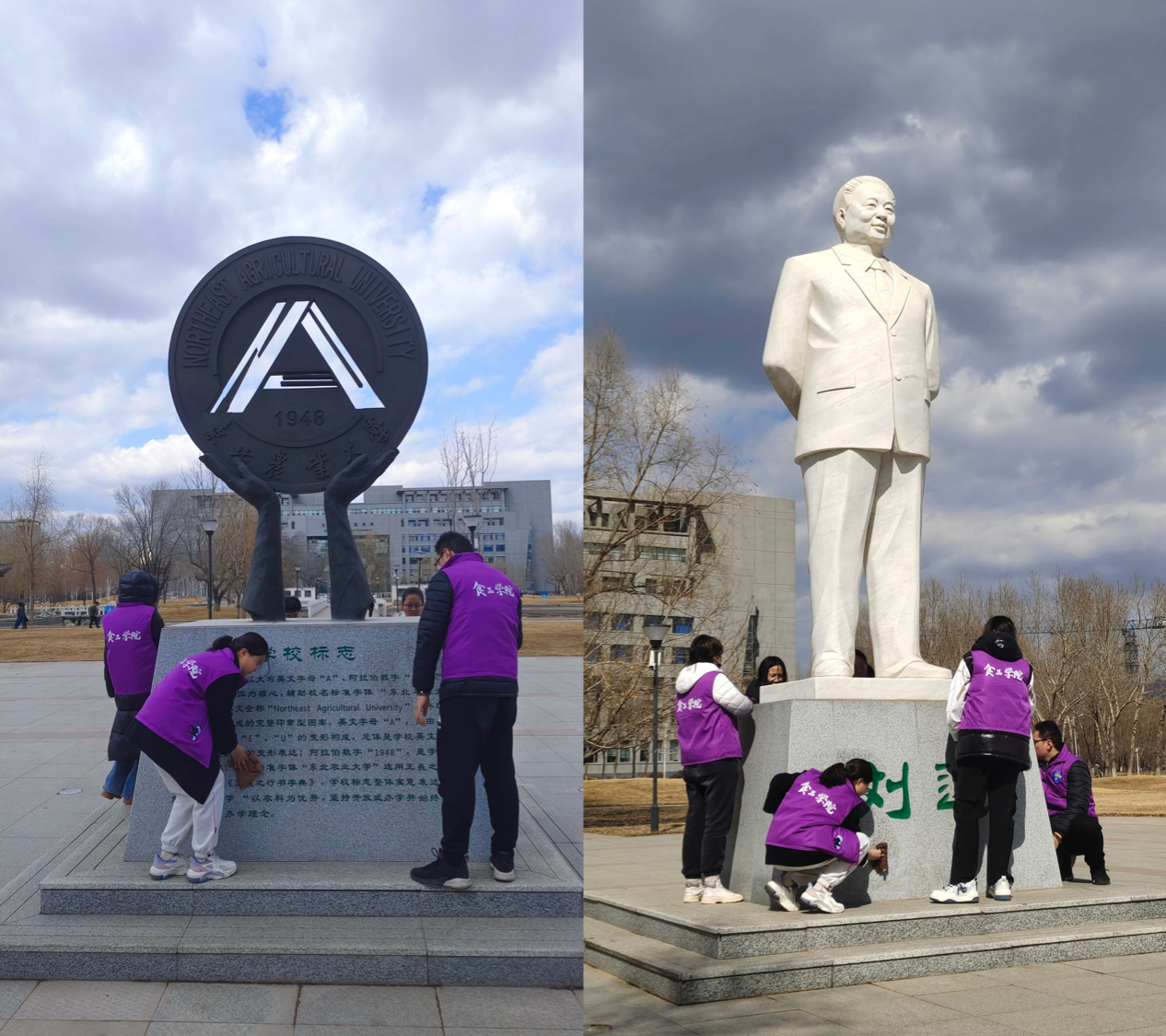 为增进学生对校史、校情了解,缅怀为学校发展贡献力量的先贤,引导学生厚植爱国主义情怀,勇担时代使命。4月3日,我院将“爱校如家 当好主人翁”“文明于心 洁净于行”校园清扫系列活动与清明祭扫相结合,组织青年志愿者在后稷园开展清洁校训、校风文化、雕塑等志愿服务活动。组织学院青年志愿者服务站宣讲员对学校历史、发展沿革及刘达校长等老一辈科学家们的英雄事迹进行讲解,共有50余名同学参与本次活动。