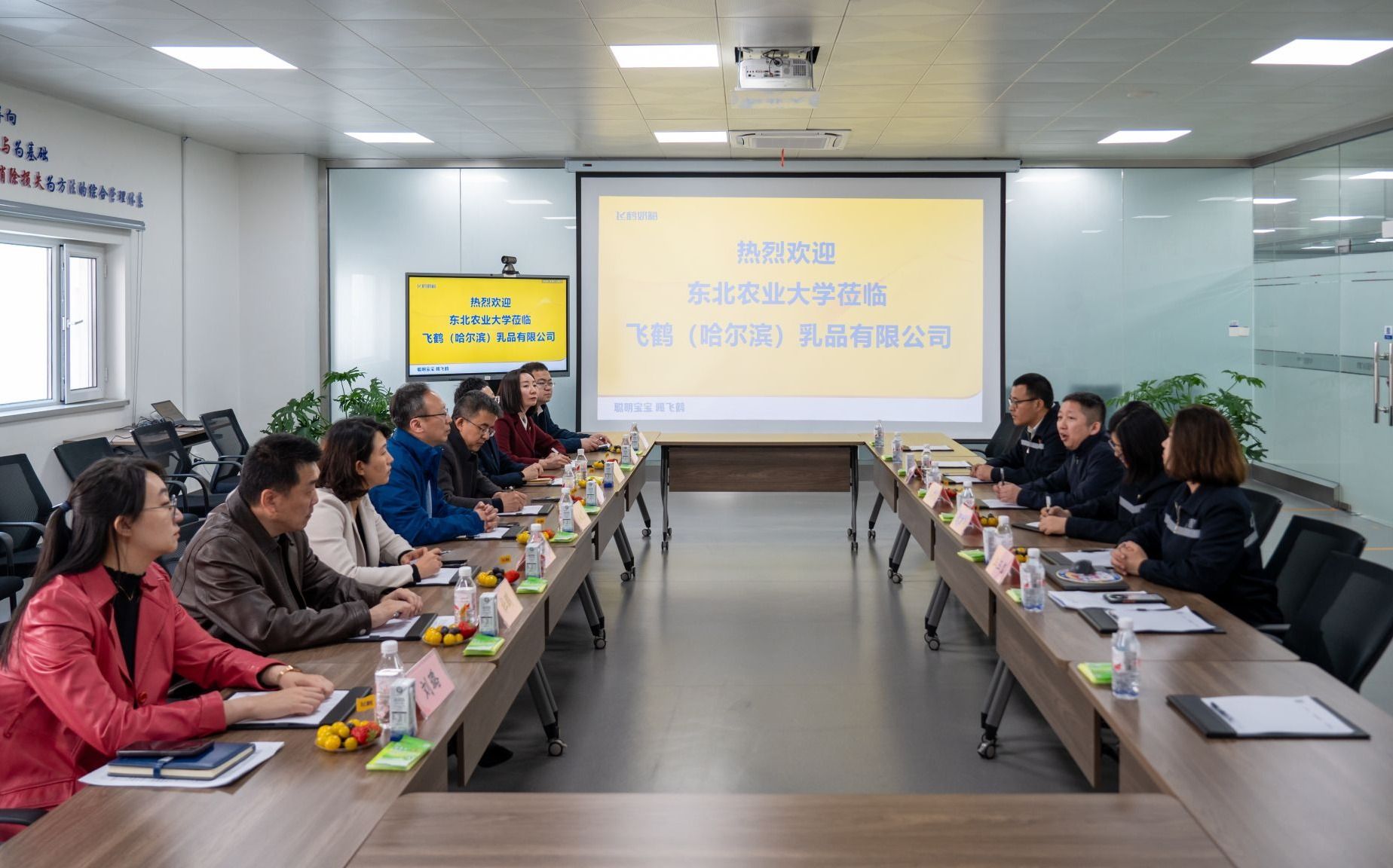 为深入贯彻落实教育部、省教育厅和学校关于开展访企拓岗促就业专项行动的工作要求,进一步拓宽就业渠道,探索联合开展科技攻关及人才培养,深度推进校企合作,4月9日下午,副校长刘竹青,我院党委书记潘俊波、院长姜毓君、正处级辅导员崔丽、党委副书记钱芳、副院长李良、乳品科学与工程系主任杜鹏、食品营养与健康系主任刘璐赴飞鹤(哈尔滨)乳品有限公司开展走访调研活动,飞鹤集团副总裁孙建国、生产事业部人事经理张吉坤、飞鹤哈尔滨工厂行政经理张俊清及人事负责人汪玉玺陪同参观并参加座谈会。
