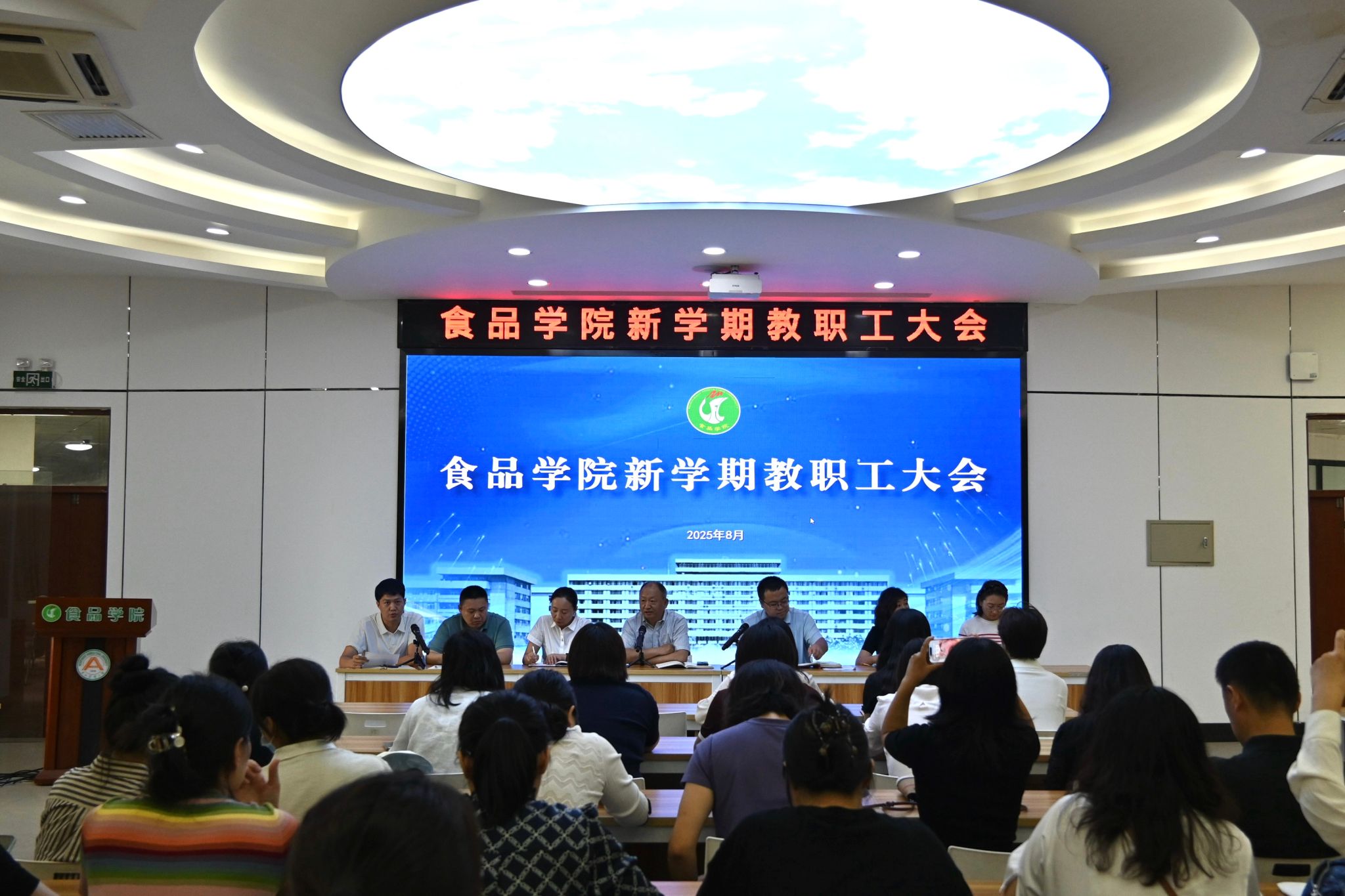 8月27日,我院在食品实验楼315会议室召开2025年秋季学期全院教职工大会。会议由学院党委书记施喜军主持。