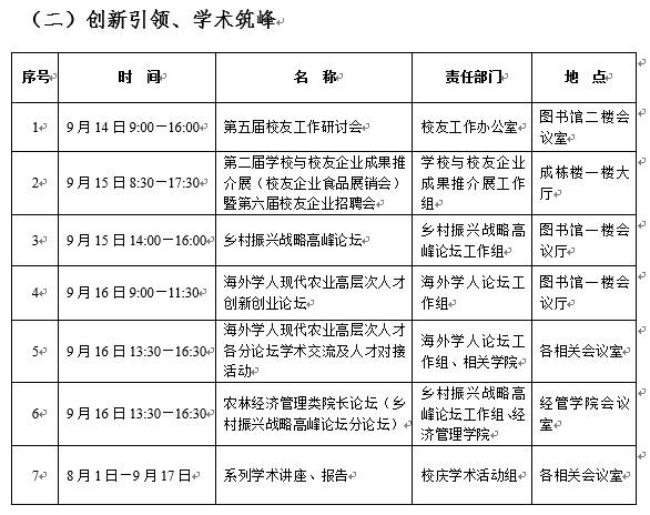 东北农业大学70周年校庆系列活动安排