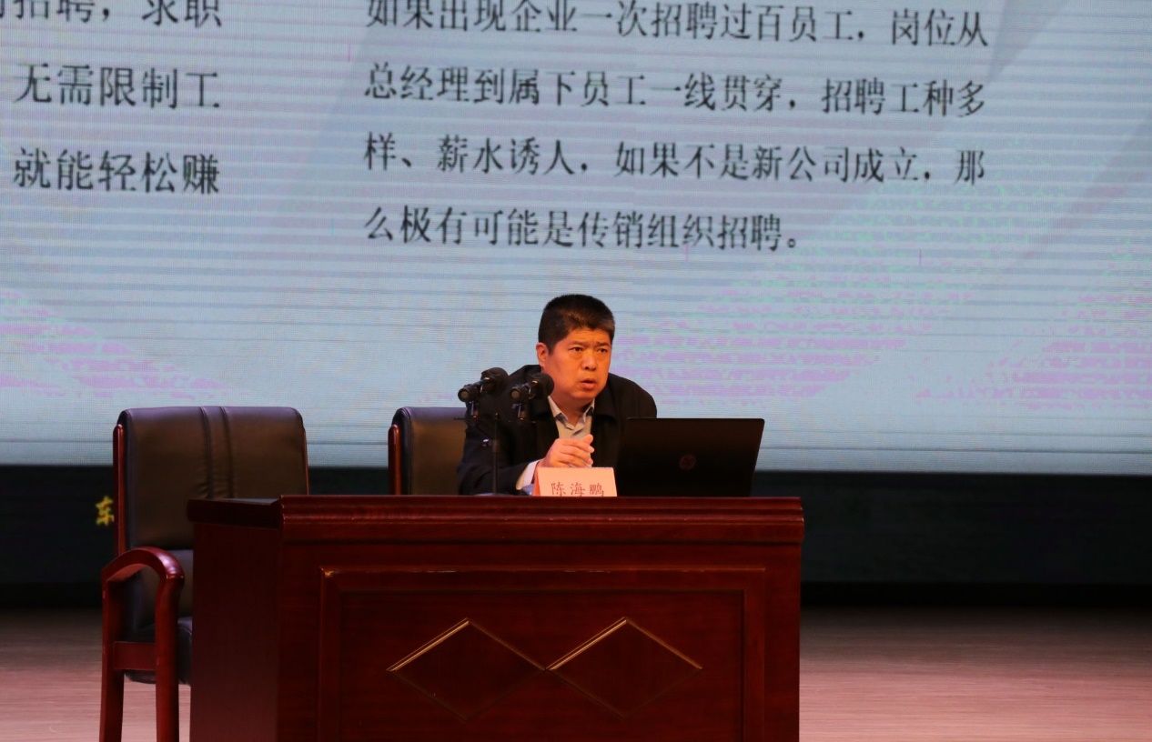 按照学校《关于开展2024年春季开学季“三防”进校园及校园安全法制宣传警示教育活动的通知》要求,切实加强在校学生防范电信网络诈骗、拐卖和性侵等违法行为的意识和能力,遏制校园内此类犯罪案件发生,营造安全健康的校园环境,49日,我院在音乐厅举办“三防进校园”2024年校园安全讲座,邀请保卫处治安科科长陈海鹏进行校园安全宣讲,我院全体辅导员及1200余名学生参加讲座。会议由我院党委副书记钱芳主持。