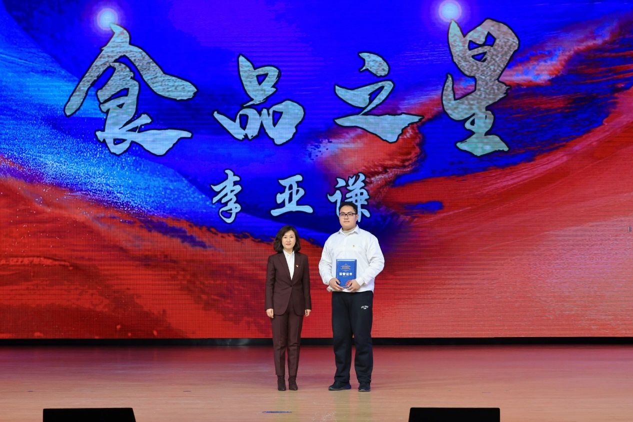 宫建伟为社会实践获奖者颁奖,他激励学生用双脚丈量大地,用双眼观察世界,用双手传递温暖,用心灵感悟生活。李良为大学生创新创业训练项目获奖学生颁奖,激发学生敢于探索未知,勇于挑战自我的潜力。崔丽为“骆承庠杯”竞赛获奖学生颁奖,继续传承和发扬骆承庠先生“求真务实、尊重科学”的精神。刁铁军为食品学科竞赛获奖者颁奖,勉励学生在学科竞赛的舞台上彰显真本事、取得好成绩。刘骞为金龙鱼奖学金获奖者颁奖,张鑫琳为澳优奖学金获奖者颁奖,食品学子是行业的接棒者,是产业创新的研发者,是学术知识的传承者,希望他们不负殷切期望,奋发有为,投身食品伟业。钱芳为食品之星获奖者颁奖,鼓励学生树立正确理想信念,提高政治素质,顺利成长成才。颁奖结束后,由荣获2024年东北农业大学年度人物的优秀保研学子李佳楠同学进行经验分享发言。