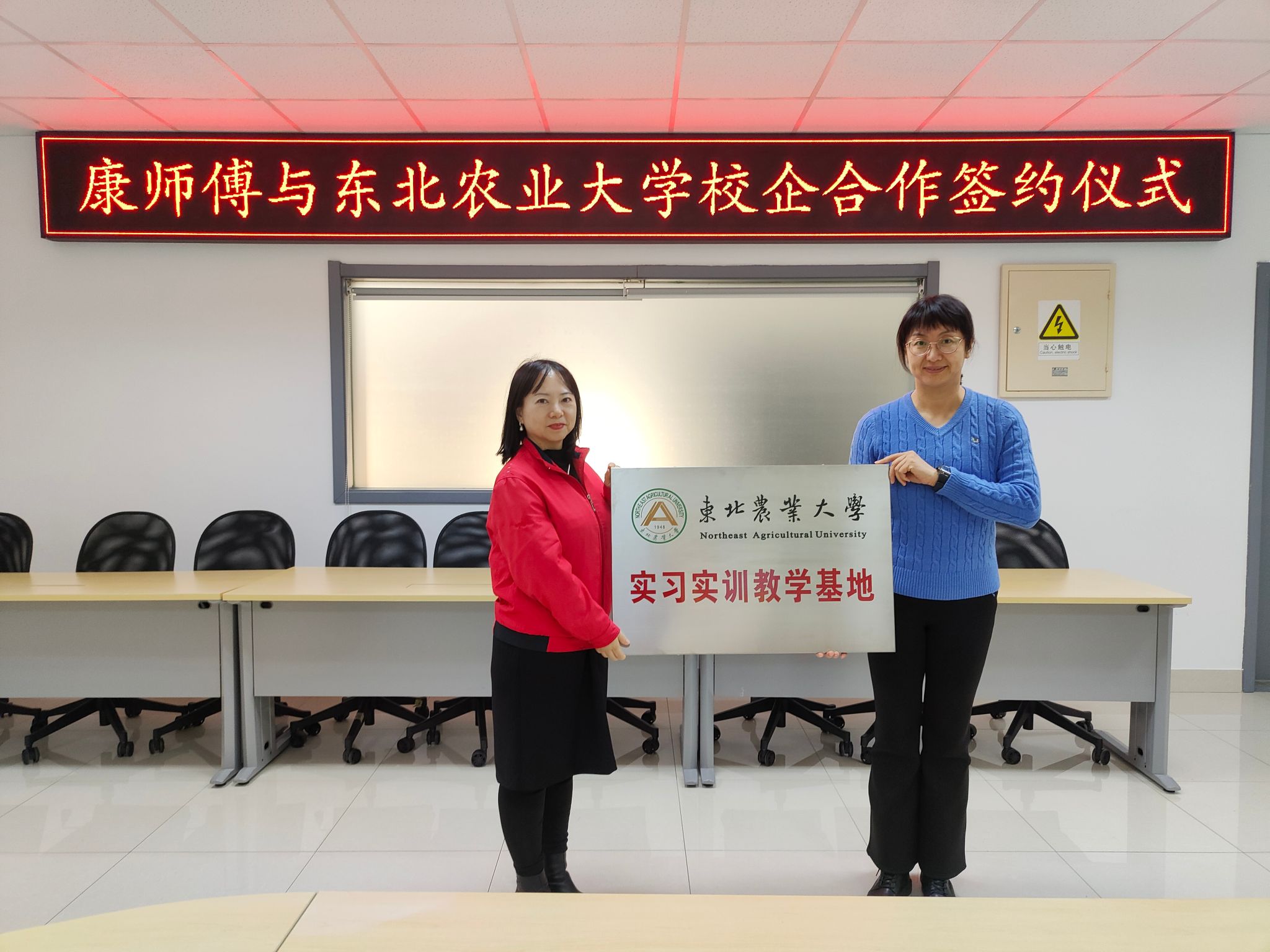 双方代表共同签署《校外本科实验实习教学基地协议书》。随后,我院代表向企业授予“学生就业实习与实践基地”“实习实训教学基地”牌匾,企业方代表接牌,全体与会人员合影留念。